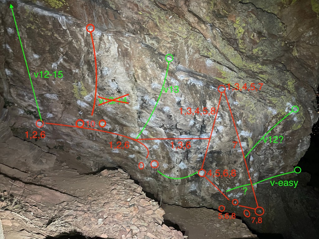 FA Connor McQueen – avoid the jug at the last move and use crimps instead adds two v-grades to Intrusive Thoughts / Lower Starts.